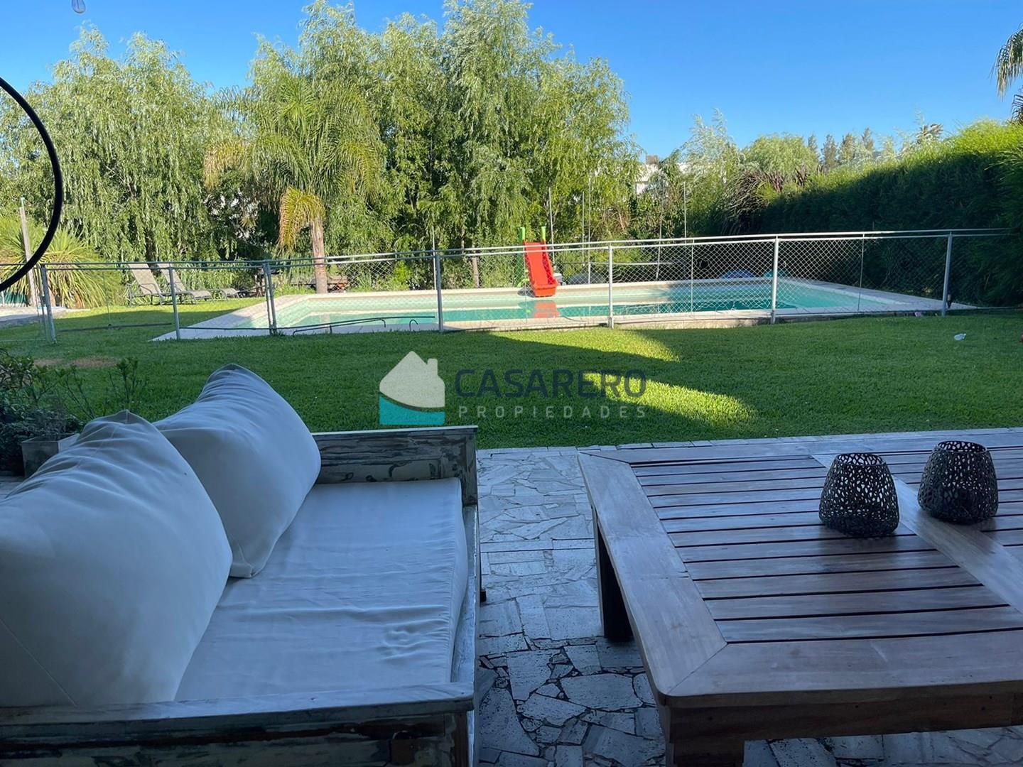 Hermosa casa en alquiler temporal desde el 5 al 31 de Enero, cuenta con 5 habitaciones, 4 baños, aire acondicionado en todos los dormitorios , ventiladores en el resto de los ambientes, pileta, parrilla, muelle con salida al rio . Gastos de luz, gas, agua, jardinero y piletero no están incluidos.