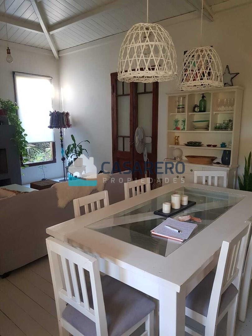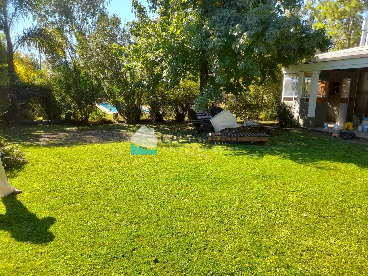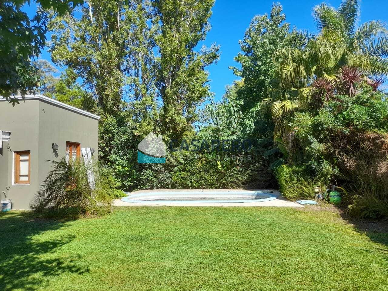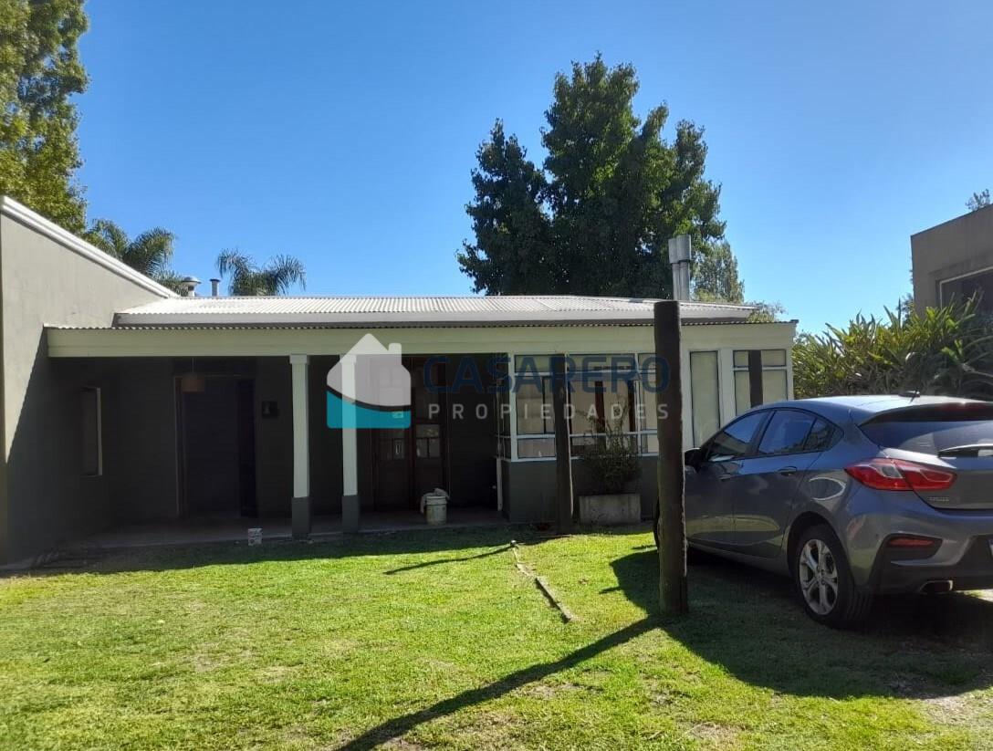 Hermosa casa desarrollada en una planta, en amplio terreno de 600m2 distribucion: Hall de ingreso, amplio living comedor, cocina integrada, dos dormitorios, baño completo, vestidor, sala de lectura/escritorio, lavadero con entrada independiente, gran parque con pileta, riego por aspersión. Cuenta con todos los servicios. Barrio con gran arboleda, dos plazas de juego para niños, recolección de residuos.