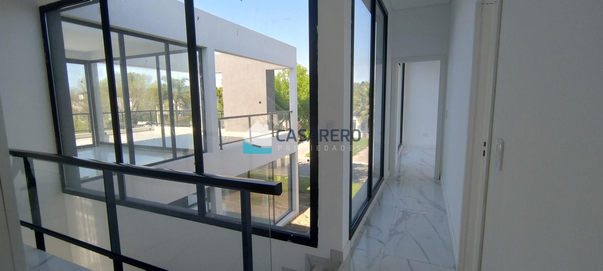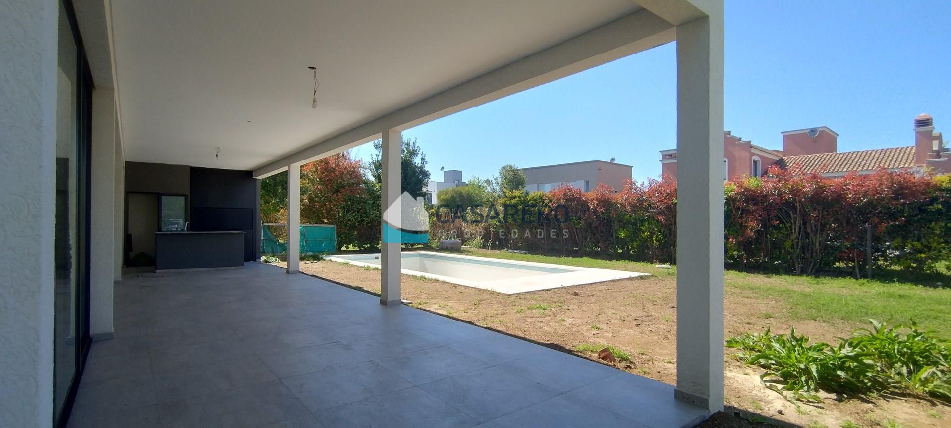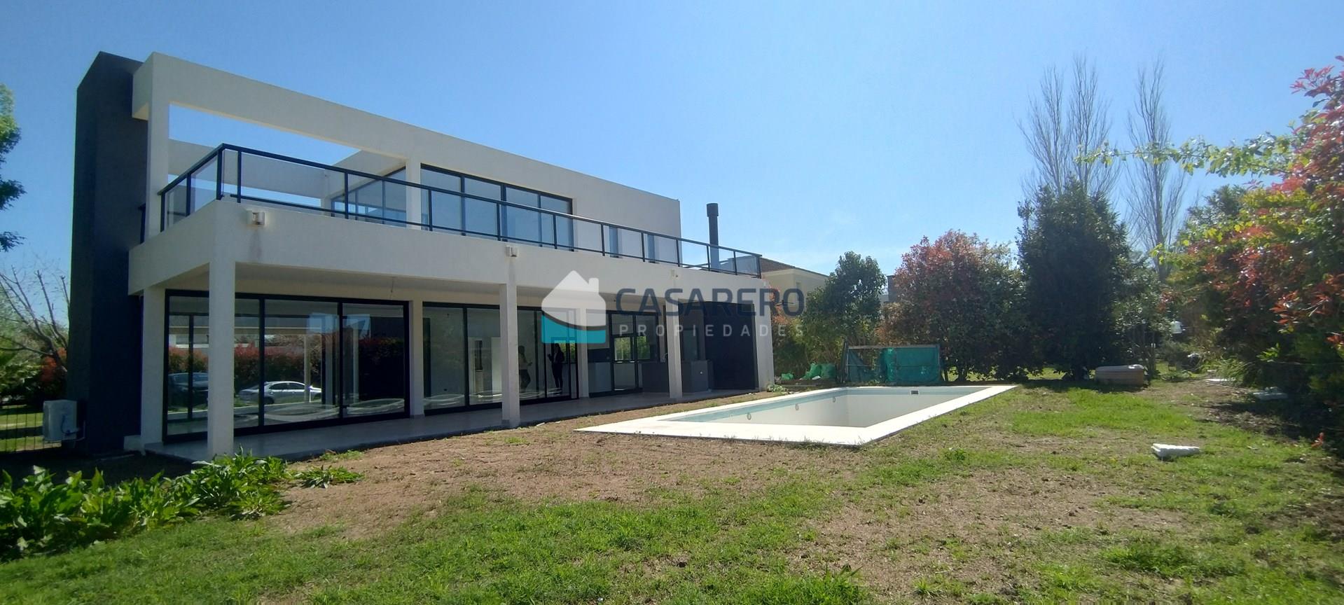 BARRIO LOS EUCALIPTOS - Casa racionalista - 250m2 cubiertos - 98m2 semicubiertos - 700m2 de lote. Desarrollada en 2 plantas, super luminosa! Planta Baja: Amplio living-comedor, comedor y cocina, con vistas hacia una galerpia enorme con parrilla con isla; Toilette de recepción; Lavadero/cuarto de planchado independiente; Baño externo con ducha; Piscina; jardín; cochera semicubierta para 2 autos, amplio solado para estacionar otros 4 autos. Planta Alta: Tres dormitorios con un baño completo; Master-suite en sector independiente, con vestidor, baño compartimentado y gran terraza con excelentes vistas. Materiales de primera calidad, aberturas A30 con doble vidrio, calefacción por piso radiante, equipos de aire acondicionado inverter marca Electra en todos los ambientes, Piscina de 8 x 4 m y riego automático.