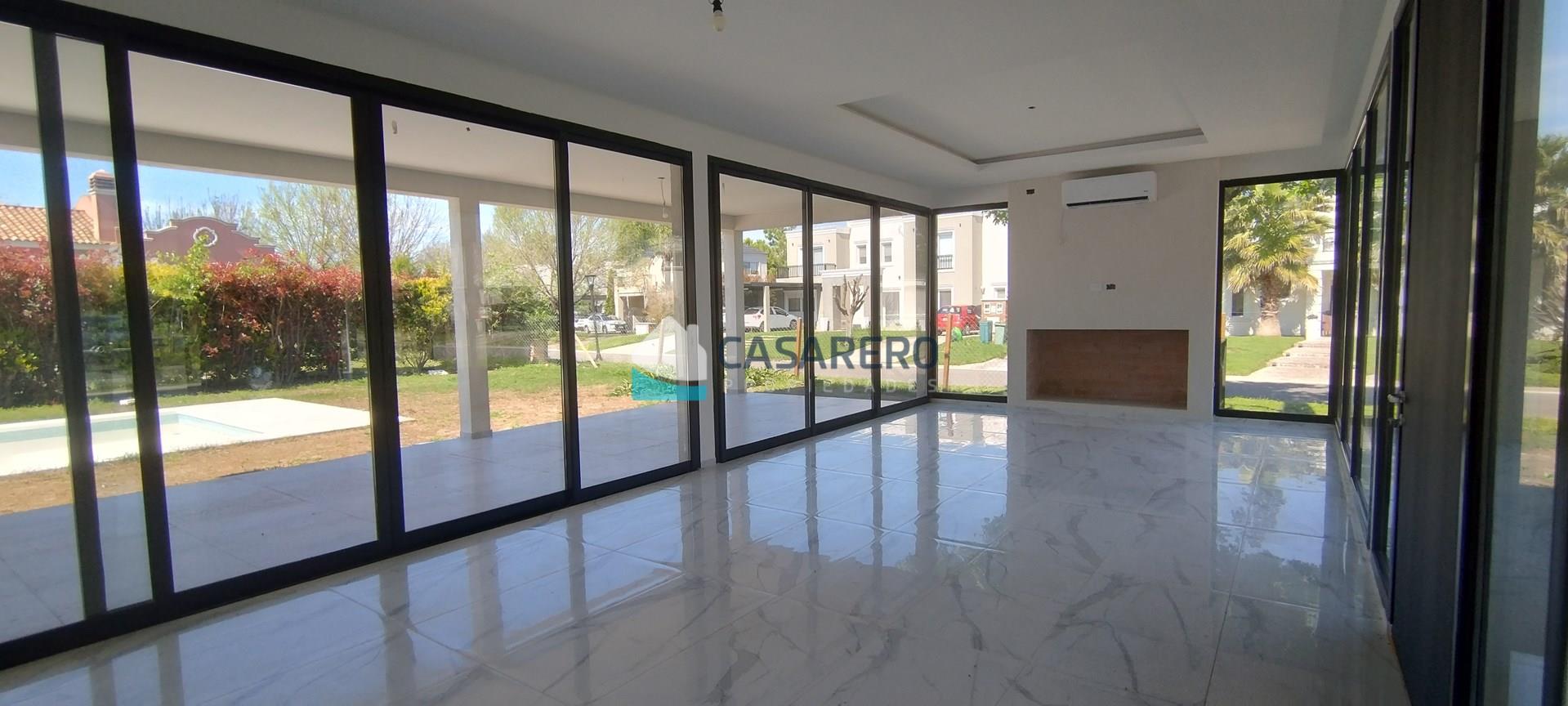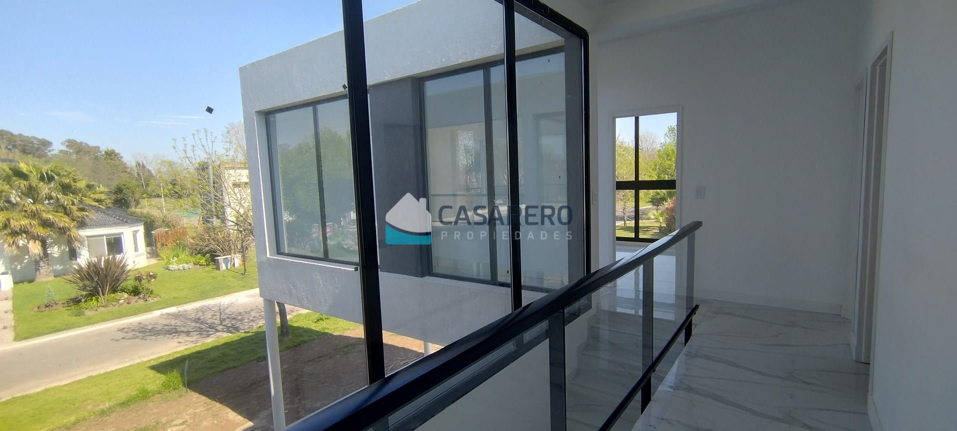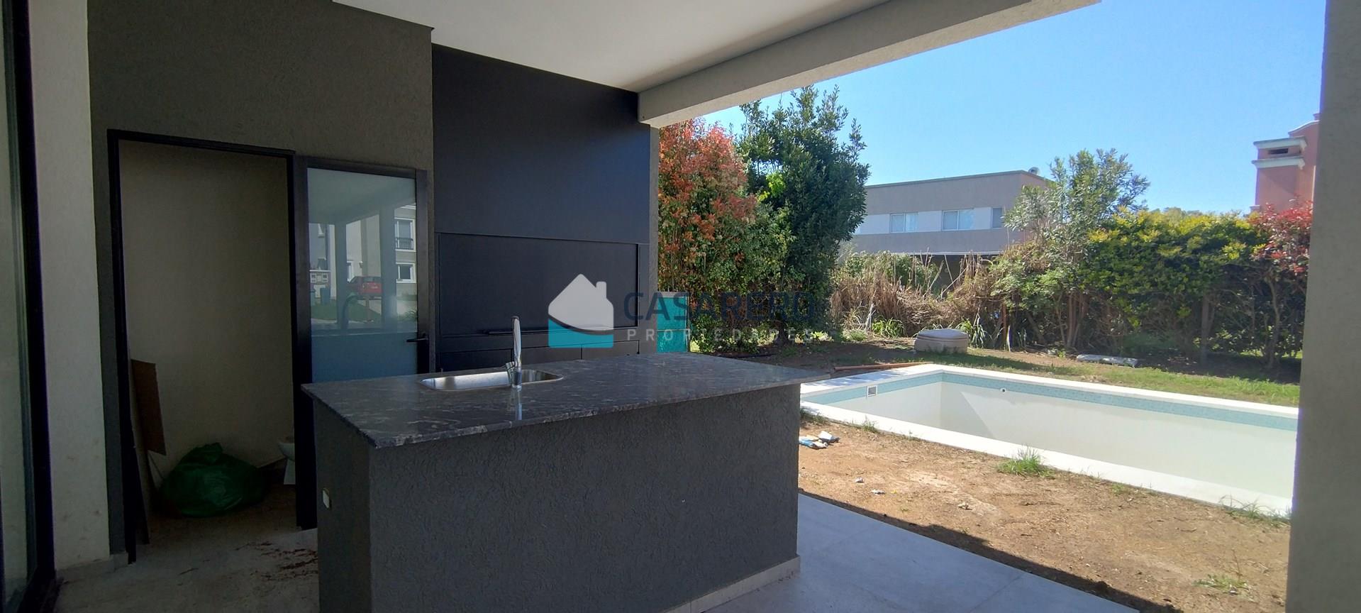 BARRIO LOS EUCALIPTOS - Casa racionalista - 250m2 cubiertos - 98m2 semicubiertos - 700m2 de lote. Desarrollada en 2 plantas, super luminosa! Planta Baja: Amplio living-comedor, comedor y cocina, con vistas hacia una galerpia enorme con parrilla con isla; Toilette de recepción; Lavadero/cuarto de planchado independiente; Baño externo con ducha; Piscina; jardín; cochera semicubierta para 2 autos, amplio solado para estacionar otros 4 autos. Planta Alta: Tres dormitorios con un baño completo; Master-suite en sector independiente, con vestidor, baño compartimentado y gran terraza con excelentes vistas. Materiales de primera calidad, aberturas A30 con doble vidrio, calefacción por piso radiante, equipos de aire acondicionado inverter marca Electra en todos los ambientes, Piscina de 8 x 4 m y riego automático.