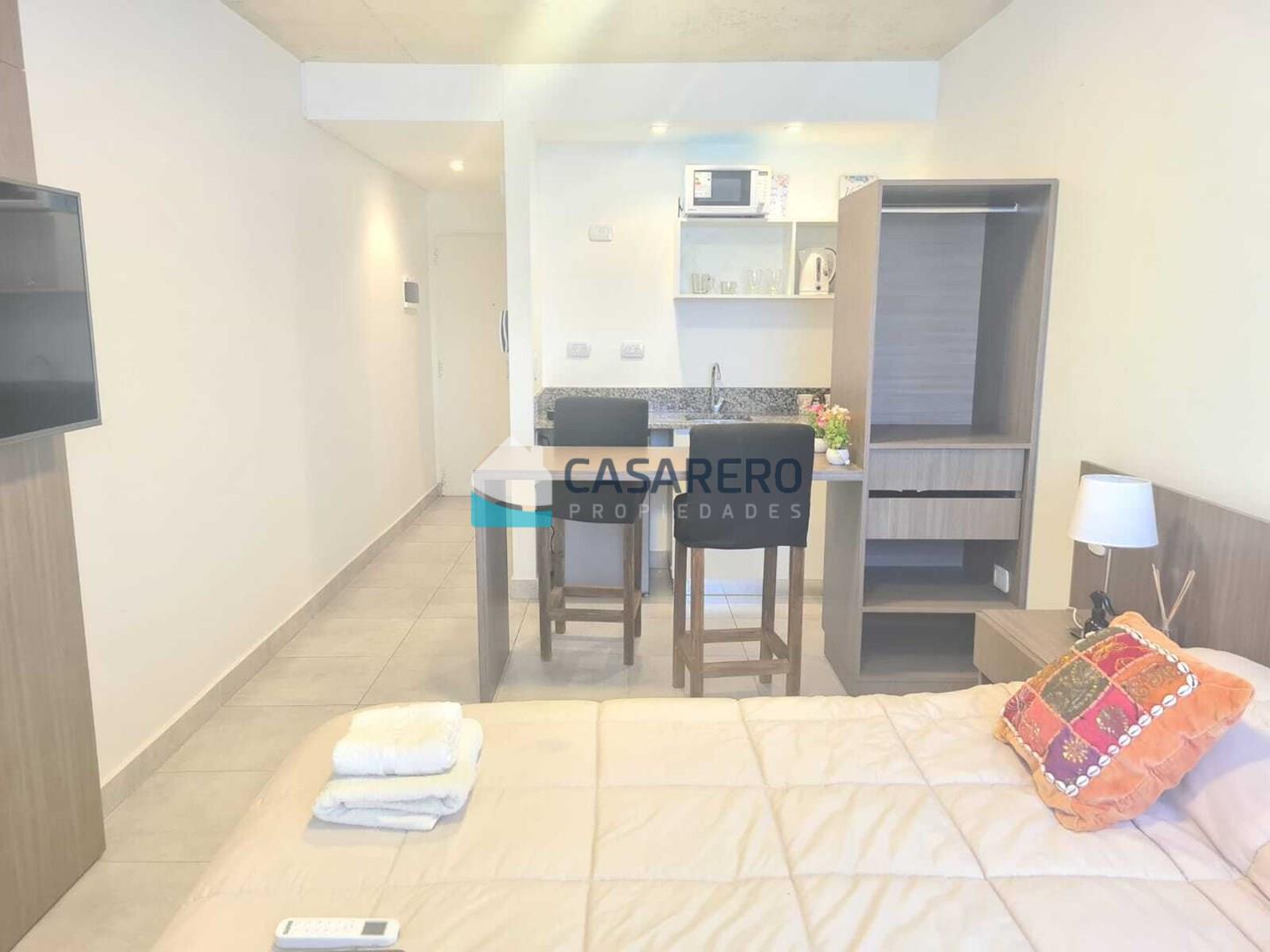Monoambiente amoblado, amplio y funcional, en un 1er piso La propiedad se encuentra en una zona súper céntrica, con excelente acceso a medios de transporte, comercios, bancos y servicios esenciales. Características: Ambiente único luminoso Cocina integrada Baño completo Edificio moderno con ascensor No tiene balcón Acceso a Pileta Valor de alquiler mensual: US$ 350, expensas $95.000.- Gastos adicionales: Expensas, seguro, Internet y servicios (luz, agua)